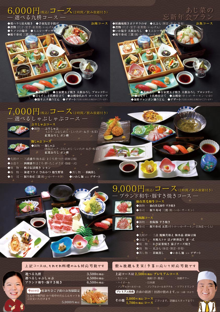 ~忘新年会はあじ菜にお任せ!あじ菜の忘新年会コース~